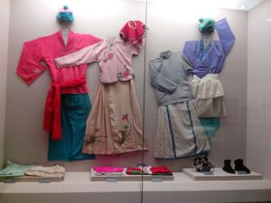 吉林省東北二人轉博物館進大門,映入眼帘的是手絹造型的景觀牆,立體的東北二人轉分布地圖,以及播放著二人轉紀錄片的大螢幕。吉林省東北二人轉博物館的主要負責人、省藝術研究院副院長孫桂林說:“為了拍攝這部紀錄片,我們花費了大量心血。”工作人員遍訪二人轉藝術家與研究專家,請他們出謀劃策,同時用影像、圖文搶救老藝人們的技藝,“已故的著名二人轉老藝人徐文臣,在生前參與了紀錄片的拍攝,這段影像十分珍貴,意義非凡。”展區第一部分,以圖文、手稿和文物展示二人轉的藝術起源與發展流布,展櫃中陳列著多種二人轉早期的服裝、頭飾以及大板、花棍、沙拉雞等手持道具。向裡面走,是唱大車店、唱木幫房兩個二人轉場景的復原,還在展櫃中陳列了拜師儀式等微縮景觀。“觀眾通過這些景觀,能直觀感受傳統二人轉藝術。”孫桂林說。