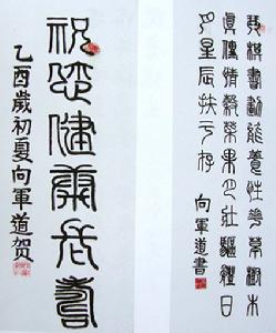 向軍道近照自幼喜愛書法藝術,工作期間經常利用業餘時間學習書法;