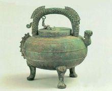 這件青銅器造型古樸典雅,堪稱中國春秋晚期青銅鑄造的上乘之作。吳王夫差盉上還刻有一勾銘文,它不僅標誌著此盉的身份,更揭示了兩千多年前這位君王的一段情感故事……