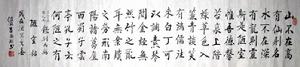 先生為人隨和,胸臆良善,心寬體胖,一副釋家氣象。然先生於求藝中,卻刻苦勤奮,持之以恆。一年之中,書寫少有一日中斷,幾十年如一日,這可從其書作中觀出端倪。先生在上世紀八、九十年代,曾參加國展八次,六次獲獎,後對此失去興趣不再介入,一心潛研書藝,以精湛作品昭示己進,得樂無限;以厚積之才情,展華夏傳統文化之魅力。先生現雖逾古稀,然精力充沛,精進不已。