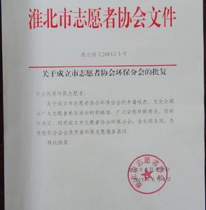 2013年6月4日,關於成立市志願者協會環保分會的批覆,周聖鳳任會長。
