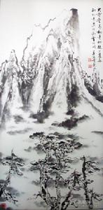 先生的影響很重很濃,在一定程度上也表現出了山水畫豪放的境界。無論是淡雅還是凝重,他總能描繪出那種壯闊的氣勢。如果說師前人,師造化,師我心是山水畫重要的治學和審美原則,在周英龍的作品裡,我們或多或少地已經感受到了這種治學和審美原則所起的作用和感染力。從一個側面,也反映了繪畫中形式與氣韻常常是在筆墨承襲中被師承的道理。