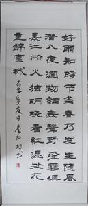 84、唐杜牧山行:“遠上寒山石徑斜,白雲生處有人家,停車坐愛楓林晚,霜葉紅於二月花。”書法作品,獲“首屆‘當代藝術家杯’全國文學書畫作品大賽”入圍獎。吸收為“當代文學藝術中心書畫家委員會”和“當代書畫家協會”會員。(2008年5月當代書畫家協會等)。