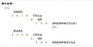 2P: arrows移動角色 1456不同攻擊 2跳躍 389使用藍瓶呼喚朋友出戰