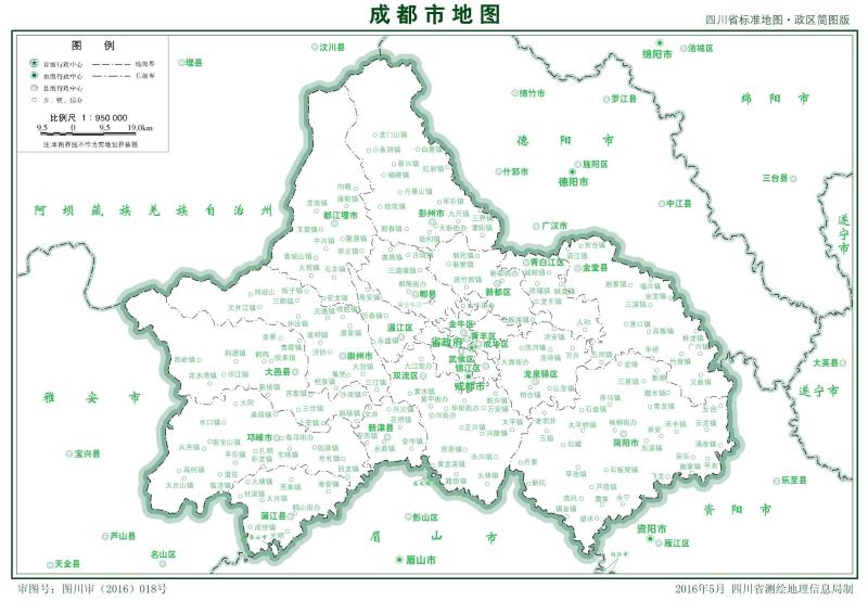 2016年5月,縣級簡陽市改由成都市代管。12月,郫縣撤縣設區並更名為郫都區。