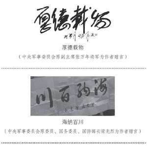 - 中央軍事委員會原副主席張萬年將軍為作者贈言“厚德載物”。