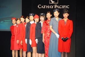 國泰六十周年慶制服展國泰航空的女性空中服務員制服,自1946年至今共更換過8次,第一套空中小姐制服屬黑白套裝,1950年改為淺藍色連身裙,1954年改為深藍色套裝,1962年首次出現中式小鳳仙裝。1983年則以黑白斜紋衫群作為制服,1990年又變成紅色套裝,現在使用的制服是1999年由香港時裝設計師劉培基設計,2004年曾由劉培基作小修改。而男性空中服務員的制服則轉變不大。