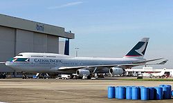 國泰航空波音747-400客機國泰航空飛機過去曾在機尾塗裝英國國旗圖案,但在1997年香港主權移交之後取消。數十年來,國泰航空的航線不斷擴展,1958年,國泰接收原香港航空經營的多條航線,包括台北、東京及首爾等。國泰於1980年代全速發展國際航線網路。1988年,更引進波音747-400客機,是全球先採用此巨無霸客機的航空公司之一。