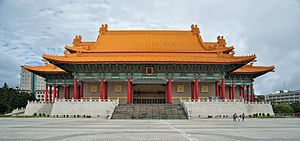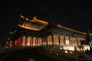 音樂廳的屋頂類似故宮之保和殿,尊位較太和殿略低,但與戲劇院相同為中國傳統建築外觀,深具傳統色彩,擁有歇山式屋頂、黃屋瓦、雕飾紅柱迴廊、及斗栱等皆展現出中華文化深厚的根基,門廳內有高達三層樓高的水晶吊燈。