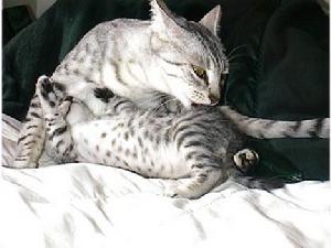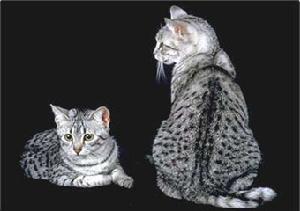 埃及貓埃及貓主要有:銀色帶深灰色花斑、淡黃褐色帶深褐色花斑、深灰色帶白色的底層毛和烏黑色花斑、淺黃褐色帶深灰色或褐色花斑。