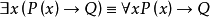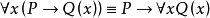前束範式在謂詞演算中,一個公式是前束範式的,如果它可以被寫為量詞在前,隨後是被稱為矩陣的非量化部分的字元串。 所有一階公式都邏輯等價於某個前束範式公式。 可以用公式在如下重寫規則下的邏輯等價來證實: