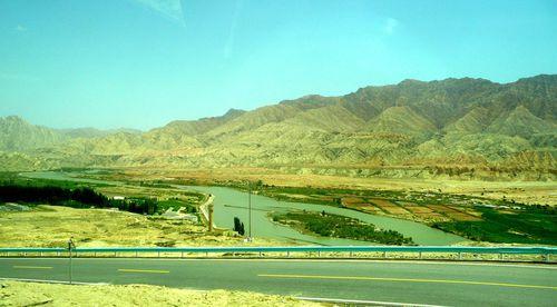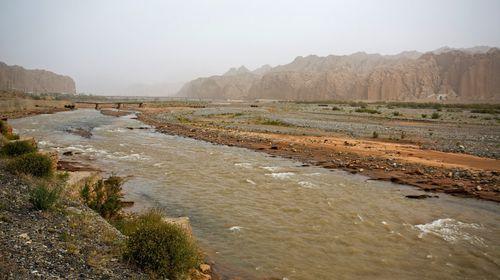 渭乾河千佛洞一段渭乾河 ,發源於天山南麓,上游段(上千佛洞以上)稱木扎提河,經拜城盆地(即天山南支脈的卻勒塔格套山,北部至天山主脈間),有4條支流匯合,即卡布斯浪河、黑孜河、台勒維契河及卡拉蘇河。木札提河全長242千米,落差1637米,最大坡降23.7‰,流域面積16716平方千米。上游4條支流與木札提河在上千佛洞以上匯合後即稱渭乾河。該河經過38千米峽谷,落差90米,比降3.1‰,即進入庫車、新和、沙雅3縣平原,由西北流向東南,最後注入塔里木河。全河上下游(包括木札提河)總長442千米,流域面積32616平方千米,總落差1787米,年徑流量33.04億立方米,多年平均流量69.6立方米/秒。