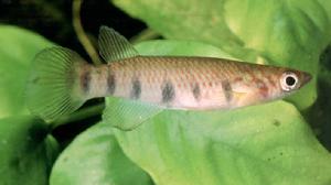 墨痕鱂拉丁學名:Epiplatys sexfasciatus命名人:Boulenger,1899英文名:six-barred Epiplatys產地:分布在西非,從多哥至薩伊河河口處。體長:11cm習性:屬於表層水域的魚種,只適合和同體型的魚種飼養在一起。食性:活餌,也會接受冷凍食物及薄片飼料。