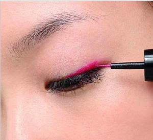 彩色眼線是要很大程度的提升眼部印象,所以不能畫的過細,而且色彩感不可以太弱,想要顯色就要在用眼線液
