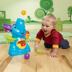 當色彩鮮艷的小球彈從大象的鼻子彈出,通過大象的耳朵落在他的肚子裡或散落在地板上,寶寶定會充滿喜悅地尖叫。轉動大象鼻子改變它的角度,可以將簡單的玩耍變成“追逐模式”,陪伴孩子坐立、爬行或是學步的成長過程。小球不可預測的彈出和有趣的音樂讓寶寶在玩耍中體驗一刻不停的樂趣!寶寶抓握和丟擲小球的動作幫助他培養手眼協調和精細動作技能。