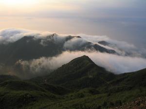 人站在高山之巔,山風涼拂 ,縱觀雲浮四周景色,積翠如雲的空濛山色,群山如黛,一片蒼茫,遼闊靜默且壯美。山下一切事物都顯得是那么的渺小那么的虛幻。我們這些忙忙碌碌的凡夫俗子們生活,很少給我們喘息的機會。此時此刻,心靈才有一份久違的寧靜與平和。