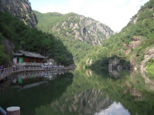 天台山由花崗岩構成。多懸岩、峭壁、瀑布。