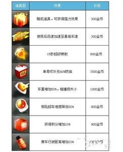 加速道具:天天飛車加速就不用多介紹作用了吧,增加賽車的速度這種道具對你們來說,肯定是非常有需要的。