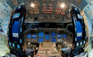 駕駛艙通常設計成駕駛員/副駕駛員都可操作模式,這樣在任何一個座位上都可以駕駛軌道器,也可以執行單個人的緊急返回任務。每個座位上都有手動飛行控制器,包括鏇轉和轉換駕駛桿、方向舵踏板和減速板控制器。駕駛艙里可以坐4個人。軌道顯示器和控制器在駕駛艙/乘員艙的尾部,左邊的軌道顯示器和控制器是用來操縱軌道飛行器的,右邊的軌道顯示器和控制器是用來操縱有效載荷的。在駕駛艙里共有2020多個分散的顯示器和控制器。