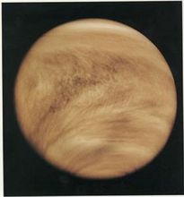 金星比地球稍微小一點,內部構造或許也類似。金星是除了太陽與月球外,天空中最亮的天體,這是因為它的大氣層能強烈的反射陽光。大氣層的主要成分是二氧化碳,它能在溫室效應下吸收更多的熱,因此,金星成了最熱的行星,表面高溫度可達攝氏480度。厚的雲層內含有硫酸的小滴,並由風以每小時接近360公 里的速度吹向行星各處。雖然金星需要243個地球日才能自轉一周,但高速的風只需4個地球日就把雲吹得環繞行星一圈。高溫、酸雲和極高的大氣壓力,(大約是地球表面的90倍),顯示金星的環境惡劣。