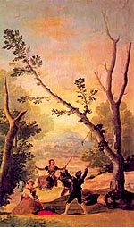 西班牙畫家戈雅被美術史推崇為開拓浪漫主義藝術的先驅。他曾畫一張斜躺的裸體女人《裸體的馬哈》,當獲知畫中人丈夫聞訊而來時,馬上為女人體畫上衣裳《穿衣的馬哈》。戈雅有幅作品《湯鞦韆的少婦》曾經被竊,那是發生在2002年西班牙的世紀大竊案,同時間17幅名畫被盜。