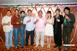 洪金寶(三毛)、李修賢、任達華、恬妞、張文慈、吳京、盧惠光及向左等,今日出席羅守耀執導的電影《奪帥》開鏡禮,並拍攝一場擺彌月宴的場面,戲中三毛飾演江湖大佬,恬妞演他太太,甄穎珊演他的二奶,現場三毛跟二位女演員擁在一起拍照,記者笑他艷福不淺時,他笑言現實中沒有那么幸福。問太太高麗虹會否突擊探班?三毛說太太翌日便返港,如果她要探班,都會陪他一起到場,不會突擊。