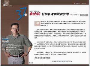 做自己想做的事,說到而且做到了。姚納新做事果斷,源於自信。敢於和跨國公司比拼的魄力,善於整合人力資源和穿透市場的能力,使他邁向成功。但,路還在繼續。