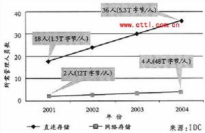 近年來,隨著企業需要保存的信息量成倍增長,企業對存儲的需求也逐步升級。Yankee Group估計全球網路存儲市場在2004年將增長到143.4億美元,2005年將達到 242.3億美元。