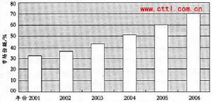 從圖4可以看出,全球網路存儲市場正在逐步擴大,市場份額從2001年的31.9%逐步上升,到2006年將占70%。