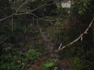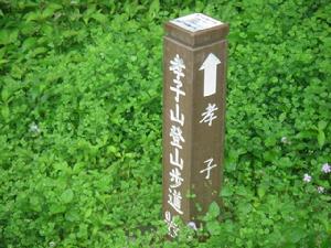 出平溪火車站,沿石平社區前行約6分鐘過石底橋遇106縣道左轉續行2分鐘,石底街40號民房右側山徑即登山口。山徑為尺許寬石板路,沿路溪澗蜿蜓,夾道叢生著野薑花。炎炎夏日在林蔭下徐行,苔痕斑駁裡花香襲人,走來好不愜意。15分鐘後抵石底街100號(普陀寺),即接上往慈母峰的產業道路。