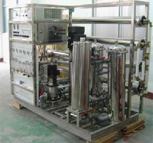反滲透設備是將原水經過精細過濾器、顆粒活性碳過濾器、壓縮活性碳過濾器等,再通過泵加壓,利用孔徑為1/10000μm(相當於大腸桿菌大小的1/6000,病毒的1/300)的反滲透膜(RO膜),使較高濃度的水變為低濃度水,同時將工業污染物、重金屬、細菌、病毒等大量混入水中的雜質全部隔離,從而達到飲用規定的理化指標及衛生標準,產出至清至純的水,是人體及時補充優質水份的最佳選擇.由於RO反滲透技術生產的水純淨度是目前人類掌握的一切制水技術中最高的,潔淨度幾乎達到100%,所以人們稱這種產水機器為反滲透純淨水機。 反滲透設備套用膜分離技術,能有效地去除水中的帶電離子、無機物、膠體微粒、細菌及有機物質等。是高純水製備、苦鹹水脫鹽和廢水處理工藝中的最佳設備。廣泛用於電子、醫藥、食品、輕紡、化工、發電等領域。