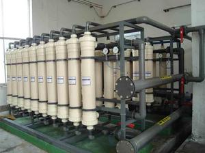 超濾是一種以篩分為分離原理,以壓力為推動力的膜分離過程,過濾精度在0.005-0.01μm範圍內, 可有效去除水中的微粒、膠體、細菌、熱源及高分子有機物質。可廣泛套用於物質的分離、濃縮、提純。超濾過程無相轉化,常溫下操作,對熱敏性物質的分離尤為適宜,並具有良好的耐溫、耐酸鹼和耐氧化性能,能在60℃ 以下,pH為2-11的條件下長期連續使用。