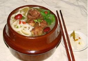 罐罐面又名砂罐煨面,是一道四川崇慶縣(今崇州市)的傳統風味小吃,已有50多年的歷史。它是用小砂罐先將面臊在火上煨好,再舀出來澆在碗中已經煮熟的麵條上做成...