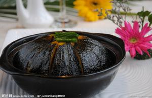 3、待南瓜熟透後,放入鹽、雞精、胡椒炒勻,裝盤即可。