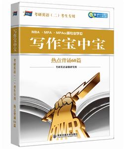 《寫作寶中寶》是一本專門針對考研英語二而編著的考研英語作文書。該書緊密結合考研英語二大綱,從總論、短文寫作和套用文寫作出發,引導考生鞏固並逐步提聯考研英語寫作水平。在總論部分,首先根據最新大綱要求,將歷年考過的真題作文題型及話題予以分析點評,然後為考生提供了辭彙、句式和段落層面的經典素材。根據題材的不同,該書特意為考生提供了套用文相應的寫作框架,考生可以靈活套用,提高自己的寫作水平。在短文寫作部分,為考生精心編排了40篇經典範文,其中涉及了圖表作文,話題作文以及圖畫作文。鑒於近年來考研英語二作文的發展趨勢,圖表作文被考到的頻率更高一些,因此我們在短文寫作部分,也儘量向這一趨勢靠攏,為考生提供了20篇圖表作文並配有高分語言結構點評,幫助考生達到學以致用的效果。在套用文寫作部分,精心編排了20篇套用文經典範文。考生可以通過學習經典範文,積累好的辭彙和句式,並運用到自己的實際寫作中。廣大考生通過該書的複習指導,對英語二作文進行有針對性的專項訓練,這樣就可以花更少的時間,達到更好的複習效果。本書特點