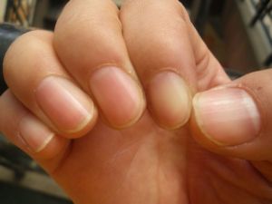 西醫上來看半月痕實際是長到指甲基底部的部分甲床[1],是不斷長出指甲的“床”,供應指甲生長所需的營養,屬結締組織。甲床有豐富的血管及神經末梢,當人體血液循環供應正常,指甲末梢供血充足,指甲生長速度較快,不斷的長出新的指甲。新生的甲體尚未老化,所以顏色較淡,靠甲床中間處分化較快,兩側生長速度遞減,就形成了一個個半月形的影紋,生長快時則半月弧顯大,代謝低時則半月弧較小,甚至不太明顯。當人體出現某些心血管疾病時,手指末梢供血受到破壞時,甲體生長速度低於老化速度時則顯現為半月痕減小或無半月痕。由此看來當人們觀察指甲半月痕時,通過半月痕的表現形式可以大致了解到當下自己的健康狀況。