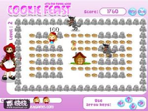 名稱:小紅帽吃餅乾遊戲類型:益智 遊戲大小:0.32 方向鍵控制人物移動,要在規定時間內吃完餅乾並且沒被大灰狼捉到!