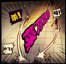 | 菜刀雙殺 白小飛手持一把長柄菜刀,小胖持兩把葵花牌菜刀,一左一右攻擊敵人。 二人曾用此招攻擊大蛇王和哈姆,但被暗日魔術師用撲克牌擊飛其中一把。 | 菜刀雙殺 |