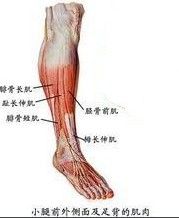 1.外側骨筋膜鞘的內容有小腿外側群肌和腓淺神經等。腓淺神經起於腓總神經,下行於腓骨長、短肌之間,沿途分支支配該二肌,其末支至小腿中、下1/3交界處,經腓骨長肌前緣穿深筋膜淺出至皮下,分布於小腿外側及足背的皮膚(第1趾蹼及第1、2趾相對緣的皮膚除外)。當腓淺神經損傷時,常表現為足不能外翻,分布區的皮膚感覺缺失。