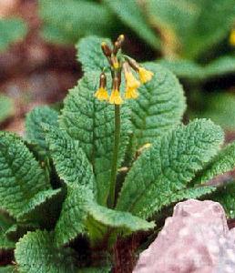 多年生小草本。葉叢自極短的根莖發出,具叢生的支根和多數纖維狀鬚根;葉片矩圓狀倒卵形或倒卵狀橢圓形,長3.5-9厘米,寬1.5-3厘米,先端圓形,基部漸狹窄,邊緣具齧蝕狀小牙齒,上面深綠色,下面淡綠色,微被粉質腺體,中肋在下面寬扁,稍隆起,側脈9-15對,與中肋成55-70度角;葉柄不明顯或長達葉片的1/3,具翅。花葶1-2枚自葉叢中抽出,高10-15厘米,果時高可達20厘米,近頂端被粉質腺體,具傘形花序1-2輪,每輪2-8花;苞片線形或線狀披針形,長3-8毫米;花梗長5-15(20)毫米,開花時稍下彎,果時直立;花萼鍾狀,長3.5-5.5毫米,裂片長1-1.5毫米,三角形,全緣,稀稍呈舌狀並具1-2小齒;花黃色,同型,花冠筒長5-7.5毫米,喉部具環狀附屬物,裂片矩圓狀倒卵形,長2-3.5毫米,近直立或僅稍開張,冠檐直徑6-9毫米,雄蕊著生於冠筒中上部,距冠筒基部約5.5毫米,柱頭和花葯達同一高度。蒴果近球形,直徑約5毫米,稍長於花萼。花期5-6月。