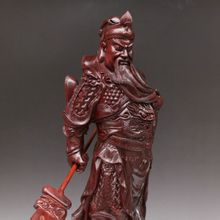 紫檀木:在各種硬木中紫檀木質地最為細密,木材的份量最重,木紋不明顯。紫檀木的木花放在白酒中,木花將立即分解成粉紅色,且與酒形成較粘的膠狀物,傾倒時能連成線。這是鑑別紫檀木的有效方法,紫檀木的產地主要在印度,中國的雲南、兩廣等地也有生產。紫檀是豆科的一屬,約有十五種,多產於熱帶。其中有兩種分法。紫檀,俗稱小葉檀;一為薔薇木,俗稱大葉檀。小葉檀很少有大料,材料直徑多在20厘米以內,再大就會空心而無法使用,小葉檀木紋不明顯,色澤紫黑,有的黝黑如漆,幾乎看不出紋理。一般認為中國從印度進口的紫檀木是薔薇木,即大葉檀。大葉檀紋理較粗些,顏色較淺些。打磨後有明顯木線,即棕眼出現。