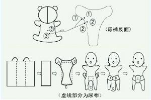 3、將規格為51Ⅹ40厘米的全棉尿布平均三折後平鋪於尿褲上。