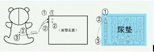 1、將兩個磁扣分別吸附在尿褲磁扣上(如圖1對1,2對2),吸附時聽到滴答一聲時,代表已吸合完好。然後將連線線插頭插入愛心熊背部插孔(如圖3對3),這時您將聽到一遍周期為13秒的音樂聲,表示產品可正常使用。