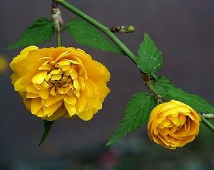 形體特徵:落葉灌木,株高達2米。單葉互生,卵形或卵狀橢圓形,緣具重齒。花單瓣,黃色,單生於側枝端。瘦果。常見栽培品種有重瓣棣棠。
