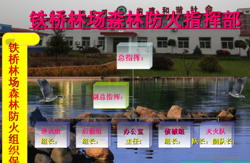 1、加強領導,層層簽訂責任狀把森林防火作為一項戰略性工作擺上議事日程。為切實加強對此項工作的領導,林場要成立森林防火領導小組,由場長任組長,主管副場長為副組長,其他場領導為小組成員。領導小組下設辦公室,具體負責、督查、驗收森林防火工作。將護林防火工作作為林場日常工作的一項重要內容,下達任務指標,層層分解,並進行督查和考核,做到任務落實,責任明確。2、 制定措施,狠抓落實3、宣傳教育與依法護林