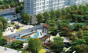 空間規劃理念一圓多線,中心聚合的大空間規劃思路,以圓型廣場為中心。同豐富的樓體景觀相結合,形成大景觀構圖。樓體間線性景觀以綠化為主,分為不同的栽植主題,加以高品質的道路鋪裝,中心廣場為集中景觀,以景觀建築與硬質井灌為主,具有一系列的景觀閃光點。綠化定位與植被系統採用喬灌木相結合,強調立體綠化效果。喬木系統都採用優秀樹種,每個樓組團為不同的樹種,採用叢植造林的手法。樹種從造型、色澤和花期上拉開距離,保持植被的豐富性和多樣性。三、開發商簡介