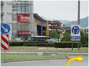 【圖1】京承高速出京方向,京密路出口出高速,往懷柔城區方向行駛。【圖2】行駛約1公里,見懷柔指示牌路口右轉。