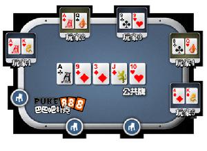· 玩家5以自己的兩張“方片”加上公共牌里的三張“方片”組成了一手方片同花,因此在牌面上是壓倒性的贏家!押注的順序