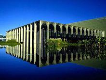 伊塔馬拉蒂宮外交部辦公樓被稱為“伊塔馬拉蒂宮”。整座大樓大廈立身於湖水中,四壁由玻璃構成。大樓四周水池環繞,白雲、藍天、水、高樓群構成—幅美麗非凡的圖景,被譽為水晶宮。水晶宮正門的湖面上一塊圓形巨石,“漂浮”在水面上。走近細看,才發現它實際上是由五塊形狀奇特的石塊絞合在一起的。這個球象徵著世界,而五塊怪石代表著世界五大洲