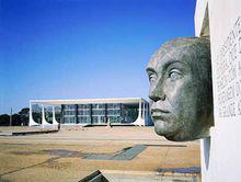 巴西政府大樓(普拉納爾托宮)巴西首都巴西利亞是一座年輕的現代化城市。它是在1956年至1960年間,用三年多時間在一片荒野上建造起來的新首都。城裡不見古蹟遺址,也沒有大都市的繁華與喧鬧,但其充滿現代理念的城市格局、構思新穎別致的建築以及寓意豐富的藝術雕塑,使這座新都蜚聲世界。1987年12月7日,巴西利亞被聯合國教科文組織確定為“人類文化遺產”,成為眾多璀璨輝煌的世界人類文化遺產中最年輕的一個。
